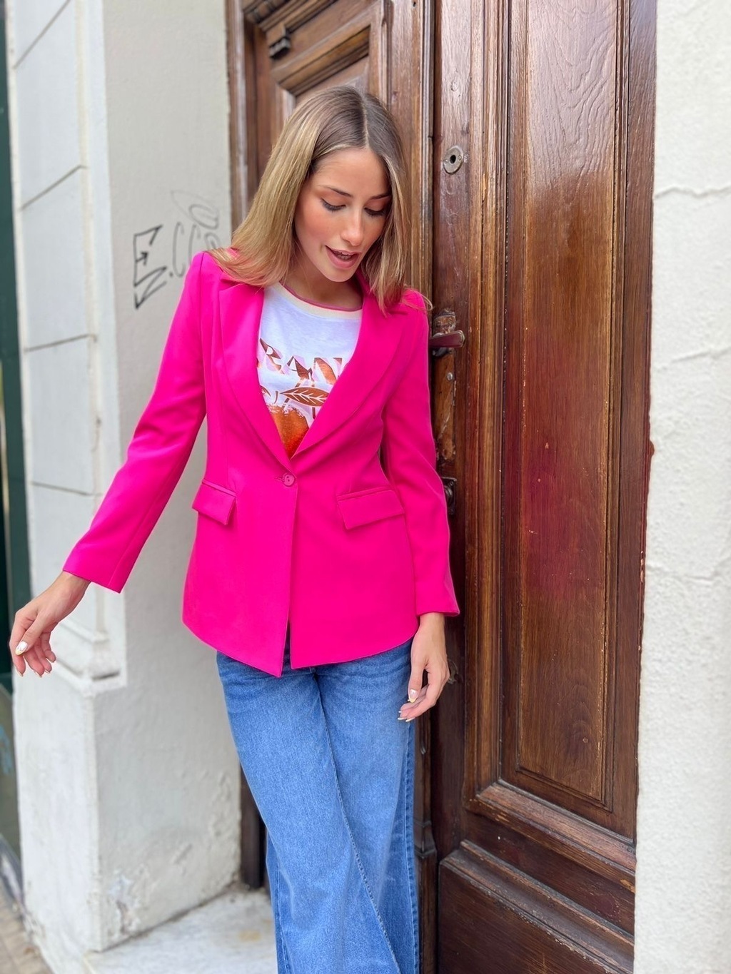 Este blazer está confeccionado en un tejido de sastrería fluida combinado con spandex, ofreciendo una apariencia elegante y cómoda.