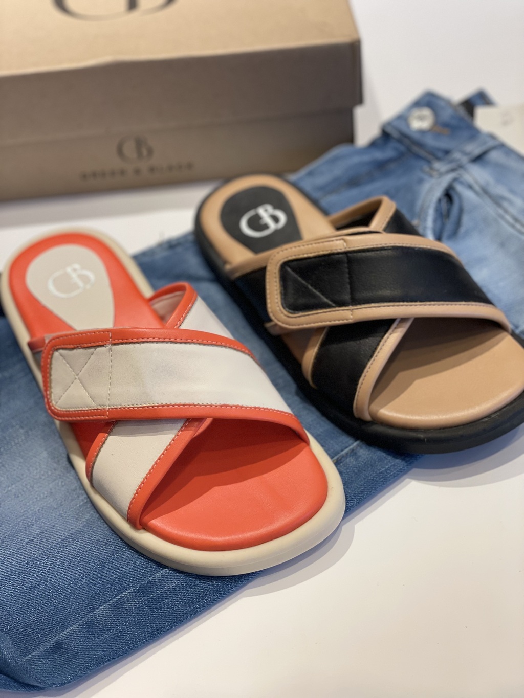 Chata de cuero con base acolchonada, dos tiras con abrojo escondido.