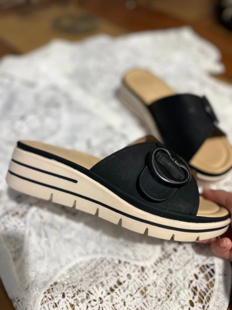 Zuecos con tira ancho con detalle de hebilla. Plantilla acolchonada y suela color crema. Super livianas , ideales para estacomoda este verano pero simpre manteniendo un look conchero.